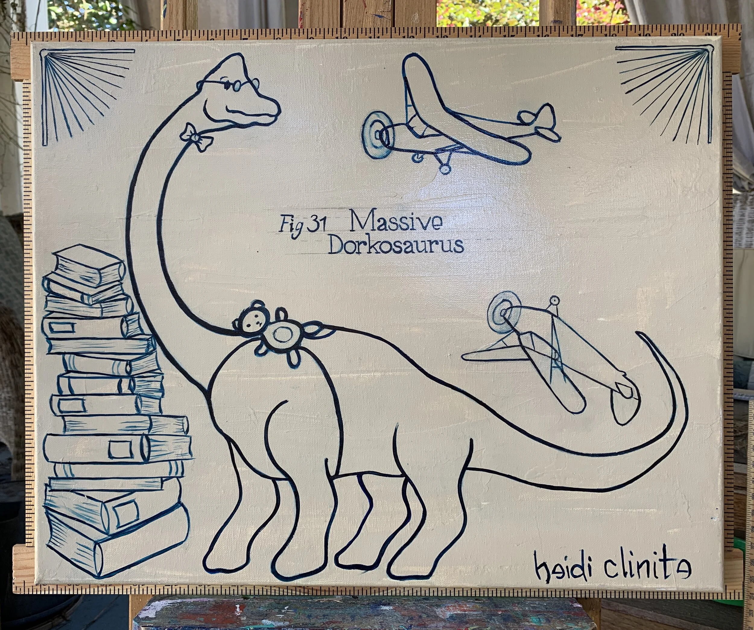 This big dork loves his toy planes and stack of books. Complete with teddy bear backpack.